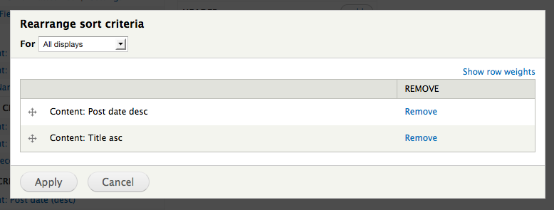 TIP: Depending on the settings in the Views quick-wizard, your view will either display entire nodes or single fields. To configure view fields you must have the row style (in the format group) set to fields. See the section about row style for more information.