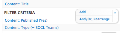 - You can create logical AND and OR groups from your filters by clicking the and/or option available in the menu at the add link for filters. (See figure 9.8)