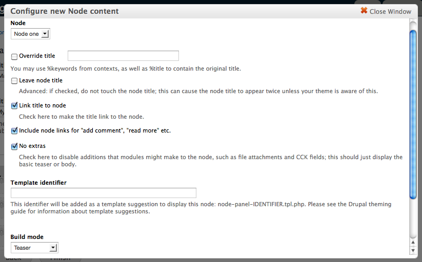 - Add a content pane display. Set administrative title, description and category in a way that makes it easy to understand the pane in Panels.