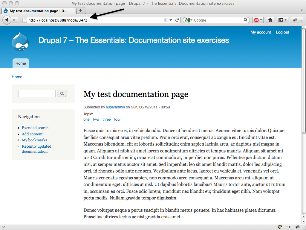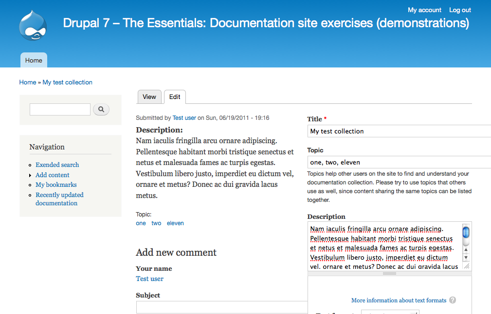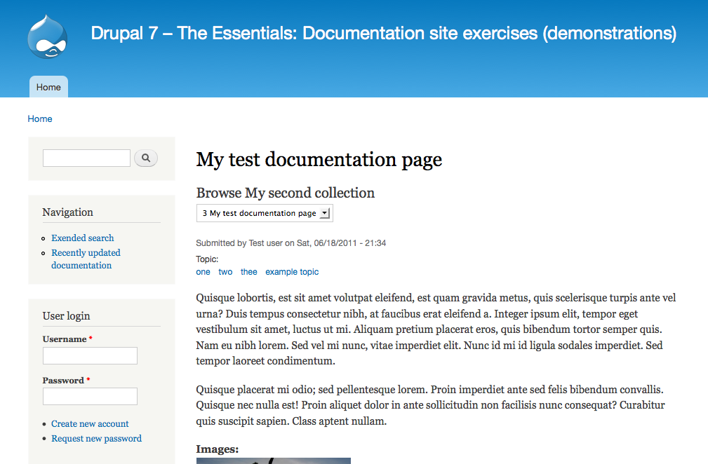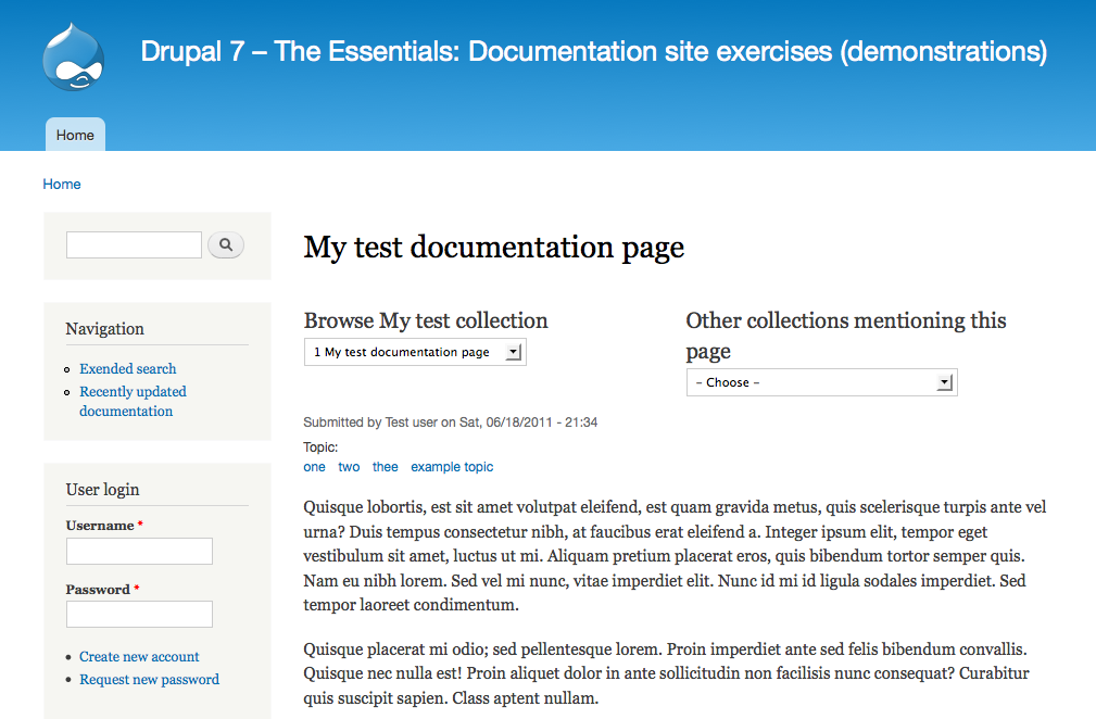 - The site should be able to display documentation pages in the context of a collection, as described in the previous two exercises.