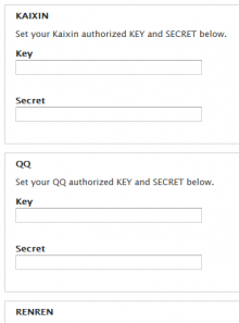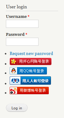中国社交网站登录,模块允许用户使用他们的社交网站的账号在Drupal网站上登录。