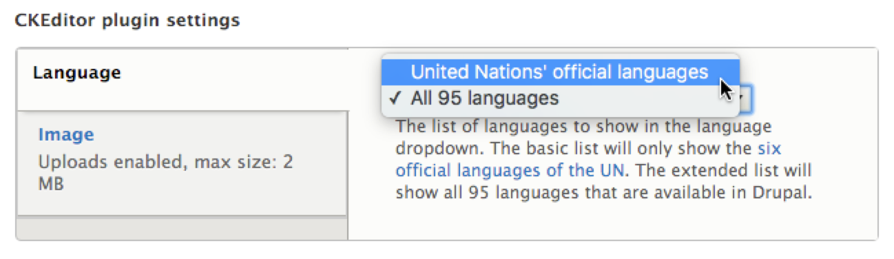 4. add a configurable interface to make the available languages selectable (http://docs.ckeditor.com/#!/api/CKEDITOR.config-cfg-language_list). Default languages included in the dropdown: spanish, arabic, french