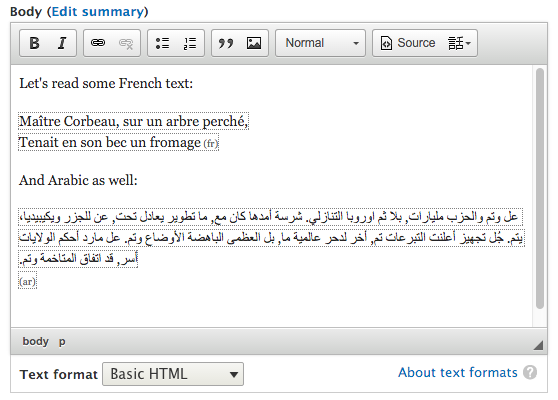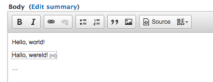 hanno commentedThis is not only for multilingual sites, but as well for monolingual sites that contain quotations, like speeches or untranslated quotes in news. But we could do a mapping to the internationalisation settings, because the button needs probably a preset of languages.