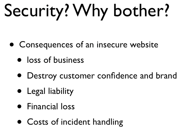 Slides from "Security: Why Bother" presentation at DrupalCon Barcelona 2007