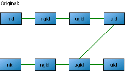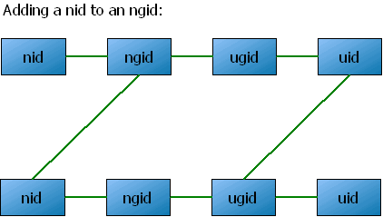 Hint: if you want to have a clear picture, draw. Points in four columns, first nid, second ngid, thrid ugid, fourth uid. It really helps. I may try later drawing by Inkscape or Dia.