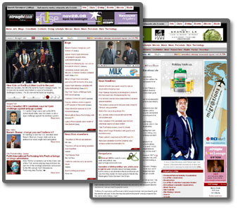 Straight.com, in addition to publishing content from the print publication, is focussed on providing web-exclusive content and building online community. Site content includes special-interest blogs, video and audio, image galleries, and searchable listings for events, restaurants, clubs, and movies.
