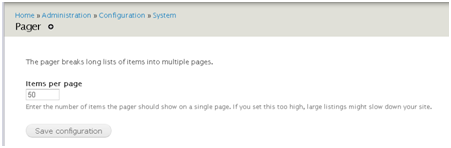 - Allow the site admin to set the number a items to view per page using pager. Also increase the default to 50.
