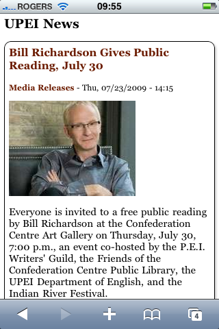 As you scroll down the main page the content is gathered from our 'media releases' on the http://upei.ca/news site. We pull the title, the date, a scaled down image and the set character limit on text: