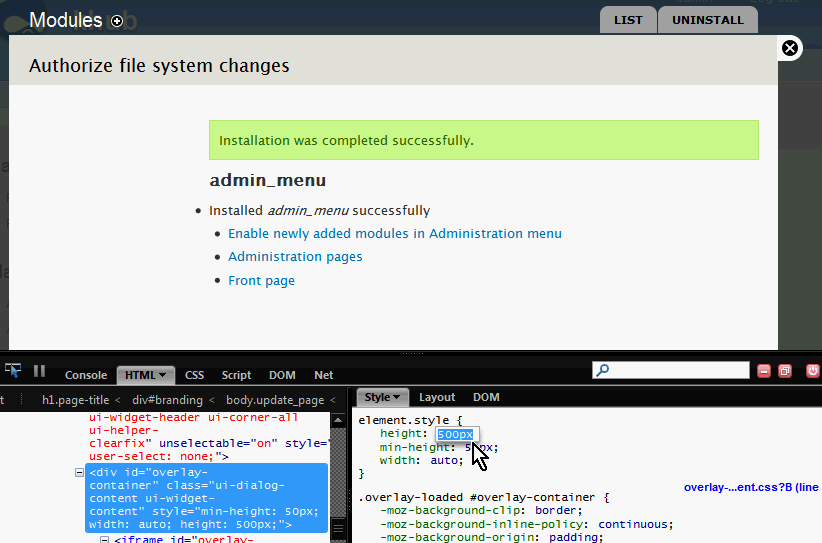 ==> #821248: Installing a module or running updates from the overlay makes you leave the overlay but doesn't bring you back.