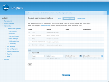 Step 3: Add a node reference field to the "Drupal User Group Meeting" content type