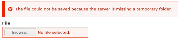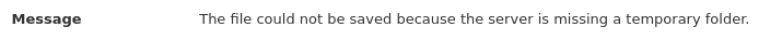 - UPLOAD_ERR_NO_TMP_DIR: "The file $original_file_name could not be saved because the server is missing a temporary folder.";