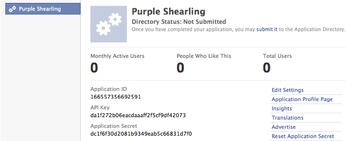 - API Key, Secret, and Facebook App ID – Copy and paste this information from your Facebook application screen