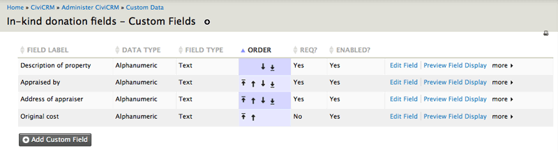 2. Create a Custom Data set: In-kind donation fields (used for: Contributions)