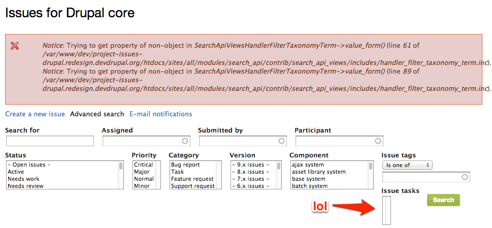 There's also some bug with the google admanager something something that displays a notice on the issue nodes. The "undefined index" referenced is the serial ID of the issue tasks vocabulary: