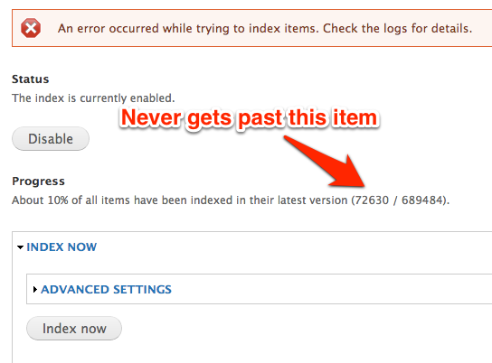 I thought maybe the index needed to be updated or something for the terms to show up, so I tried that. But it got stuck on a record 10% in and could never complete, no matter how many hours I gave it: