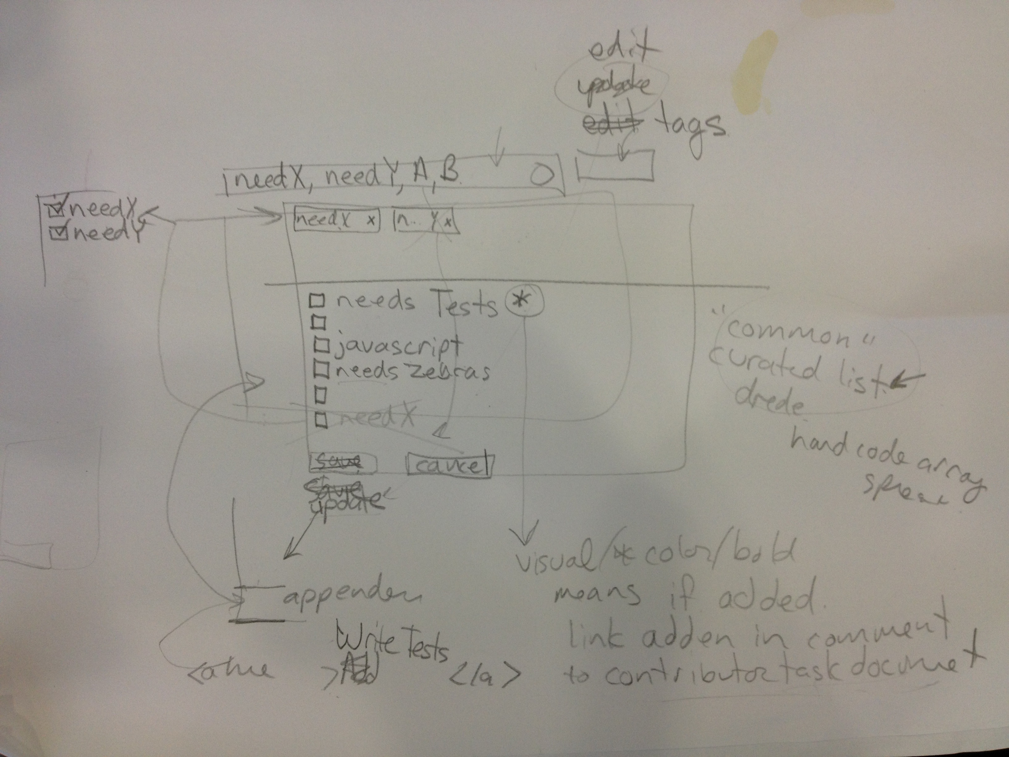 Adding tags is nice because it autocompletes and we are standardizing on tags that start with "needs...