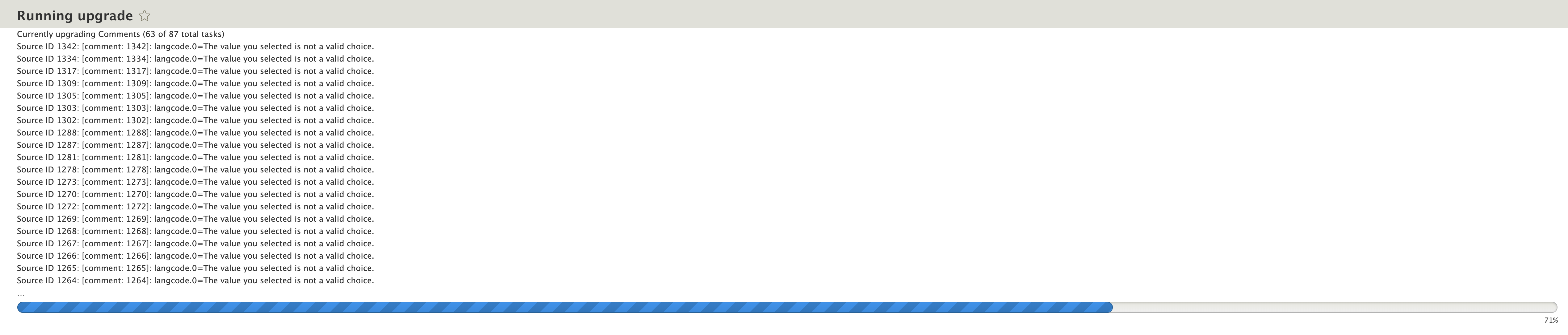 Note that the language column is empty ('') for the upper half of the rows displayed, but set to the unspecified language code ('und') for the bottom half. The upper half are comments upgraded from D5/D6. The bottom half are comments created in D7.