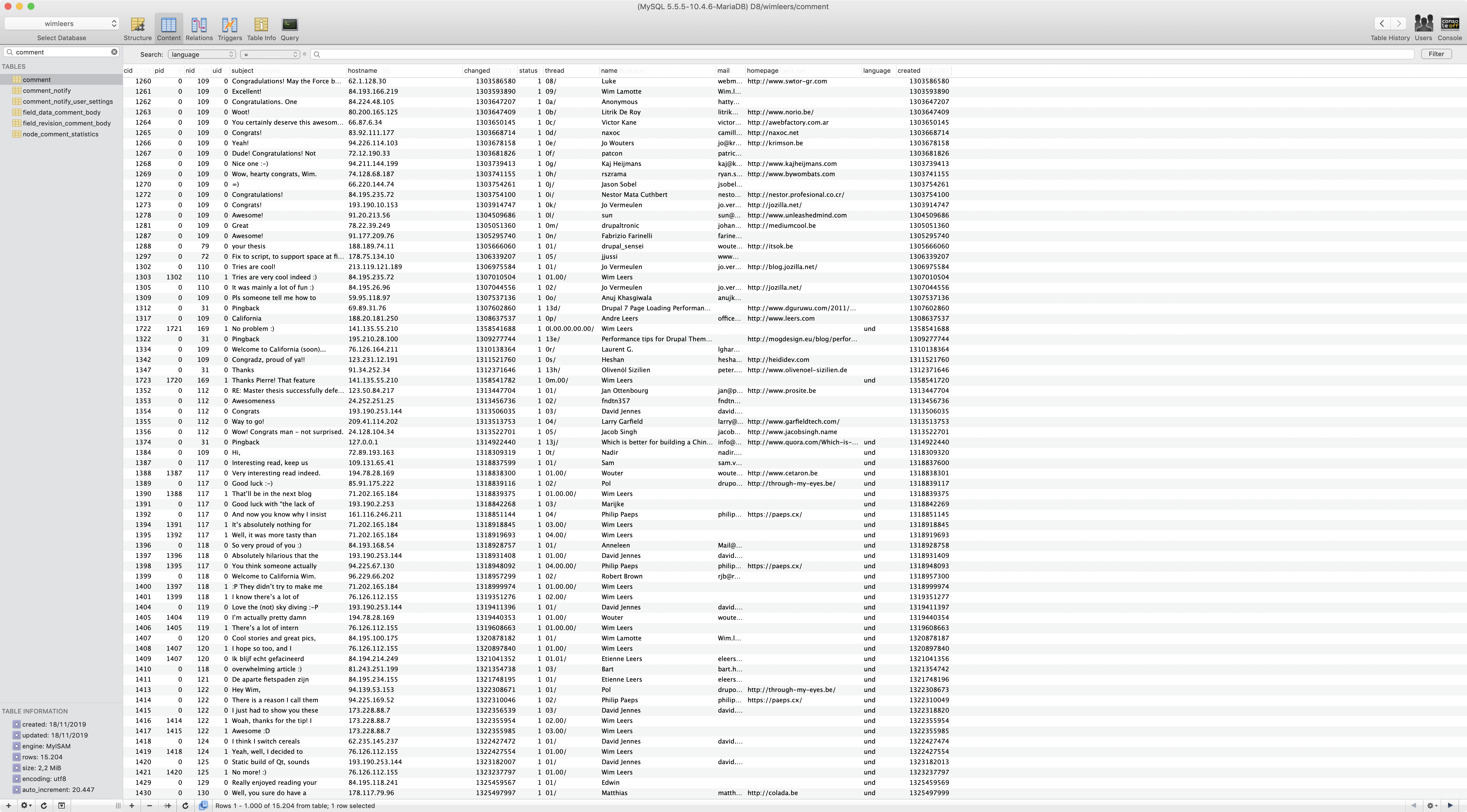 I am migrating wimleers.com from D7 to D8. It contains comments from the D5/D6 days. It looks like this: