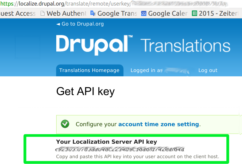 - Click on the link to go to localize.drupal.org and retrieve your API key