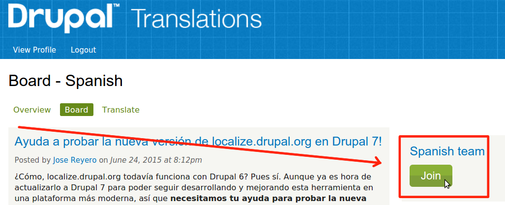 - Next click on the "Join" button to give yourself access to post translations