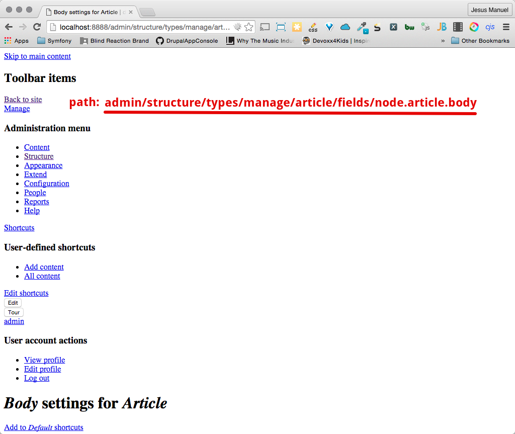 Going to index.php/admin/structure/types/manage/article/fields/node.article.body however does output correct asset URLs.