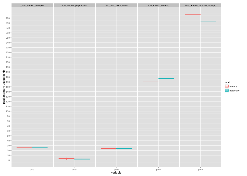 msonnabaum commentedPosting it here since I think it's more relevant to this issue, but I profiled the before and after of the fields patch which removes ternaries.