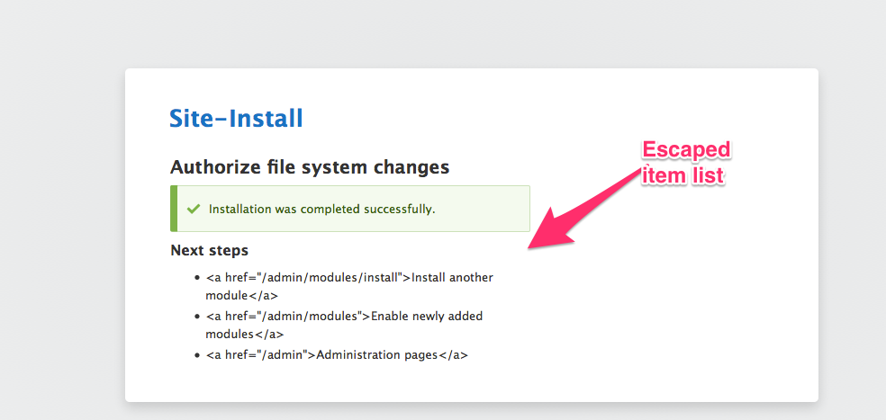 Anyway after manual testing, the "Next steps" links are always escaped, I will work on it