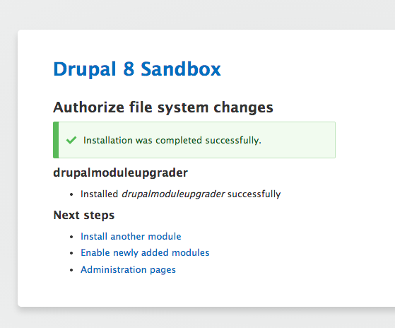 On the topic of the URLs, I now sort of see see why it's in this patch. Previously the double-escaping was fixed automatically by the rest of the code added in this issue, but now it requires changes to the URL generation too (I guess something must have changed with the SafeMarkup system in the meantime). So this is now touching the same code that #2547667: Fix broken page title Update Manager (authorize.php) would need to touch and it may therefore make sense to fix them both at once after all - in which issue, I'm not sure :) Whichever issue we fix it in should fix the theme installation links too, though (not just the module installation links), but I haven't done that here.