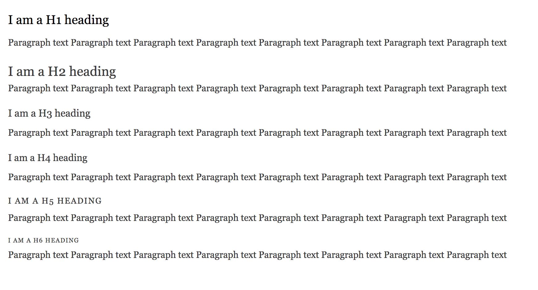 Create a piece of content with all of the headings, h1, h2, h3, h4 etc sandwiched between paragraphs.