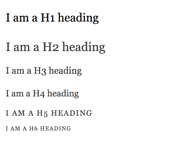 Check that the headings are styled different from each other and have a distinct hierarchy.