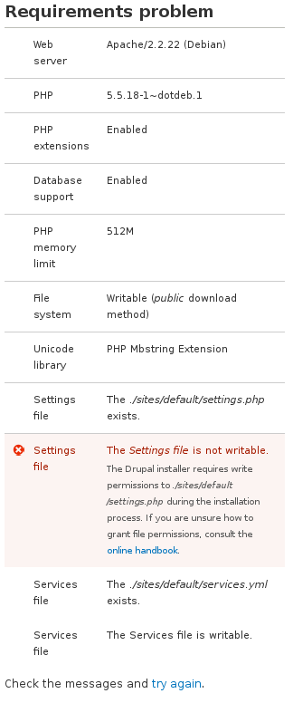 Another source of confusion is that the warning thrown at this point does not block the install, if you hit the try again link you should be able to continue. I will try to patch this on Sunday as it is not clear that the warning is not a blocker.
