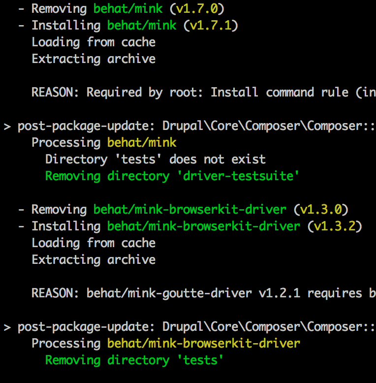 When I run composer update on 8.0.3 - I get this crappy The directory 'tests' in package 'behat/mink' does not exist. error.