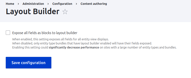 acbramley commentedAdded a release note, it's written as per the current config but we can change it in #3432874: Replace "Expose all fields as blocks to Layout Builder" configuration with a feature flag module