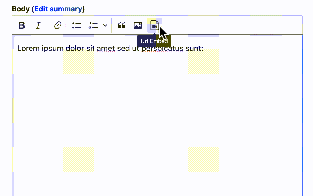URL Embed allows URLs to be embedded within a text area using a WYSIWYG editor or stored and rendered via link fields.