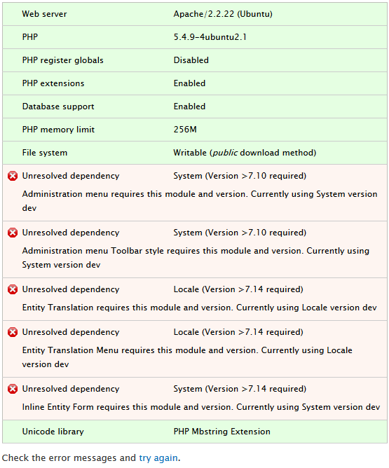 hook_requirements()tests that react to missing dependencies by either enabling the required module, or disabling the dependent module and redirecting to the module selection page with an appropriatedrupal_set_message().This works, but it strikes me as particularly messy.