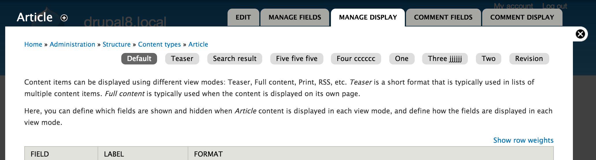 I hadn't ever enabled all those tabs here -> admin/structure/types/manage/article/display