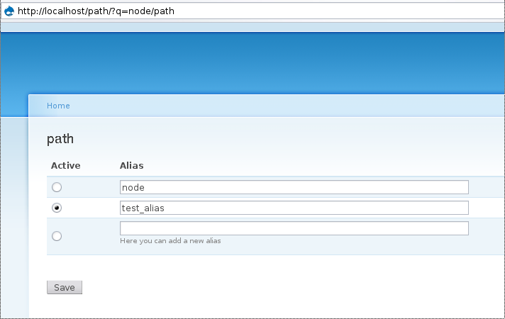 alter table url_alias add column active tinyint not null default 0;in advance. The interface works as expected for the 'official' paths (node/20/paths) and looks already very clean.I'll review again when the missing features (mainly sending out 301s for inactive paths) are implented.