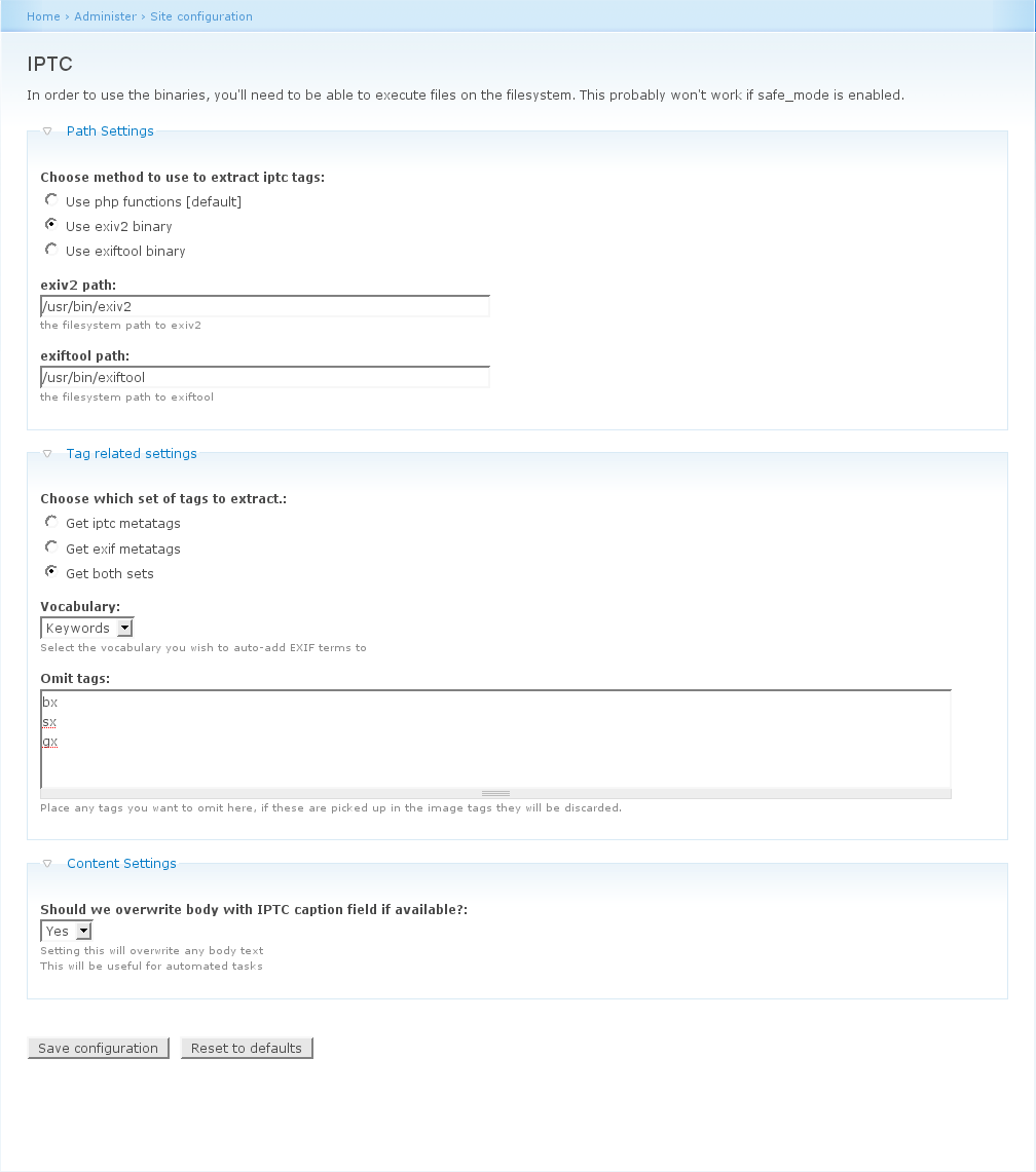 Then you can choose whether to get iptc and/or exif; which vocabulary to put the tags in, and whether there's any iptc tags you want to discard.