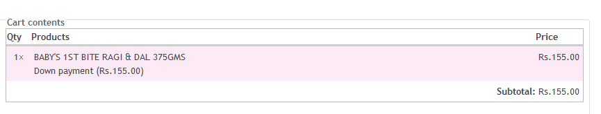 what i see in the checkout pane is the original price and not the down payment that was chosen. note that i use ajax based add to cart from module uc_ajax_cart.