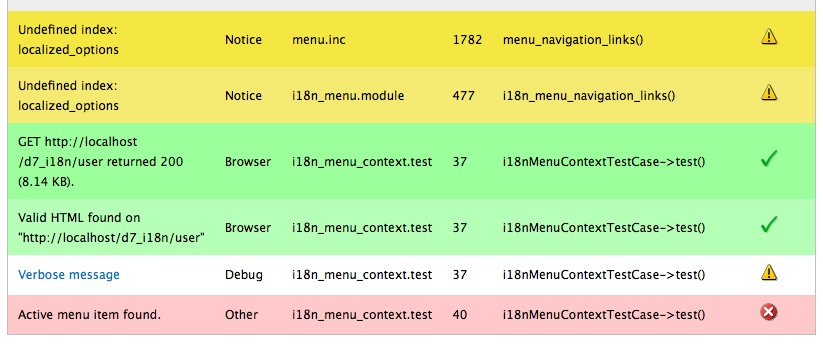 idflood commentedHere is a minimalist test that should highlight the issue. I'm not sure how the testbot will handle it since I added 'context' to the setup. There is also 2 notices that appear in the Drupali18nTestCase->setUpLanguages function by just adding context to the setup function. I attached a screenshot of the relevant local test result.