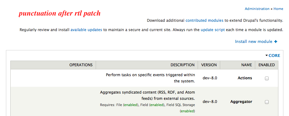hanno commentedChanging title: while testing, found out that this issue is also relevant for RTL based websites. As there is no LTR attribute, Drupal prints the text with the punctuations (.!?()) in the wrong direction. Maybe minor issue, but good to take note.
