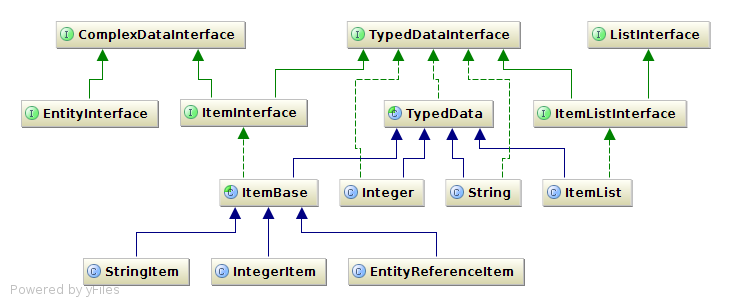 So on the first level the Property\EntityPropertyInterface must be implemented by all entity properties and essentially makes sure it is a list of property items (thus an instance of the TypedData\ListInterface) of property items. Then, the Property\EntityPropertyItemInterface defines that a property item holds multiple further "value properties" thus extends TypedData\ComplexDataInterface (just as an entity does too). Then the individual "value properties" are just objects implementing the TypedDataInterface, potentially being computed e.g. a loaded entity object or processed text.