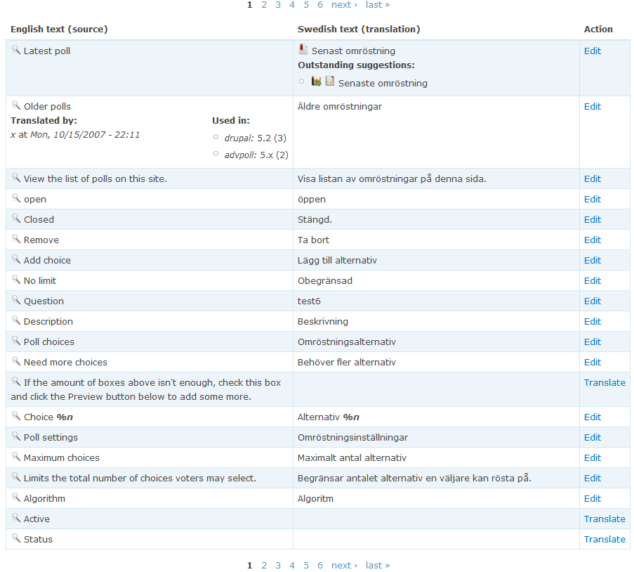 gábor hojtsySutharsan: I agree that there is a certain value is unifying interfaces, so guys moving from one system to the other can adapt quickly. I wonder whether in practice the short preview of strings as displayed in l10n_client on the left is a good way to present a choice field here. Also, how would that scale with paging or any other UI tool to handle large string sets (ie. thousands of strings translatable in Drupal).