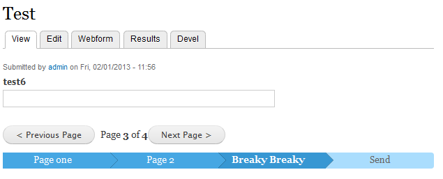 Webform pager creates a pager on multi page webform's (using the default webform pagebreak component). The pager has the following 3 options: