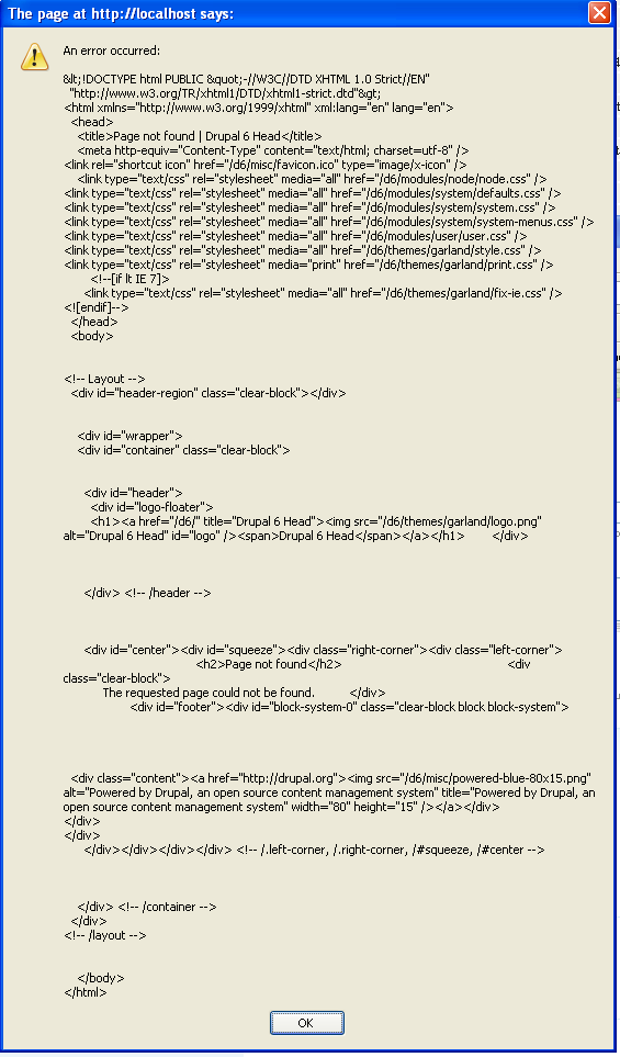 I went to page http://localhost/d6/admin/build/menu/item/9/edit on a fresh d6 install. Then I applied this patch and http://drupal.org/node/193191#comment-634164 and reloaded the page. Then I clicked "parent" and saw the two select boxes, one after another. I clicked "My Account" in the first box. The page did an AHAH update, moving the two select boxes to be side-by-side, and the attached error box popped up.