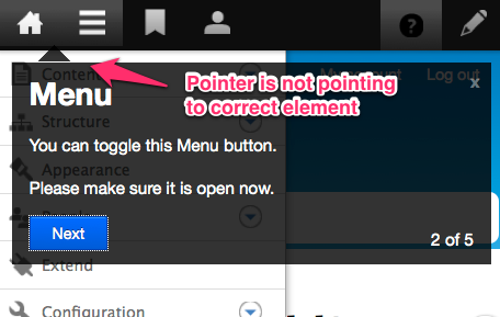 - On small screen the tour cannot point to the correct element