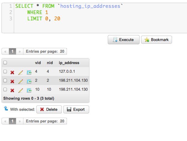 hosting_ip_addressestable had just three rows, like:Then, after the first upgrade to Aegir 2.x head it didn't remove IP from drush aliases yet, but removed one record from the table: