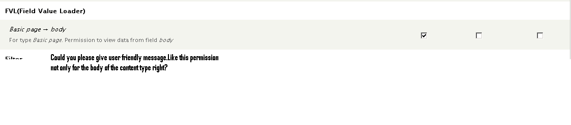 Could you please give easily understandable permission description message.(Permission to view the fields(Except title) for any content type like page or article)
