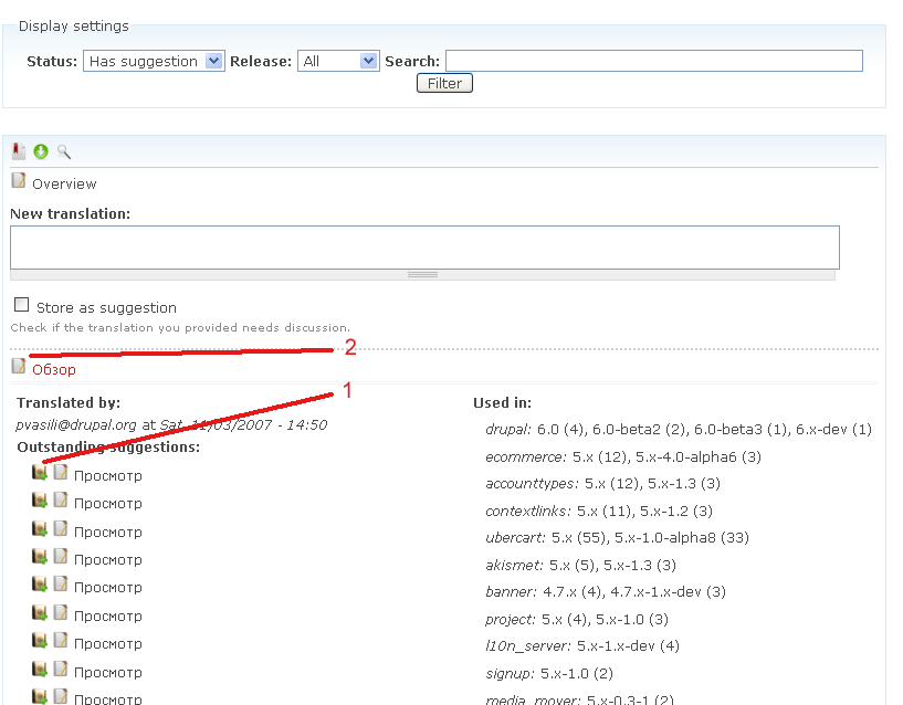 gábor hojtsy1. Again, you accept suggestions to become translations. This is the third or fourth time I write this down in this issue. Your Обзор is already translated, as you see in the status overview too.
