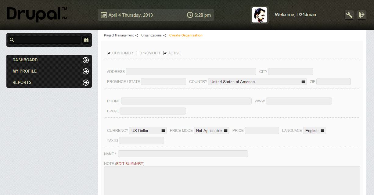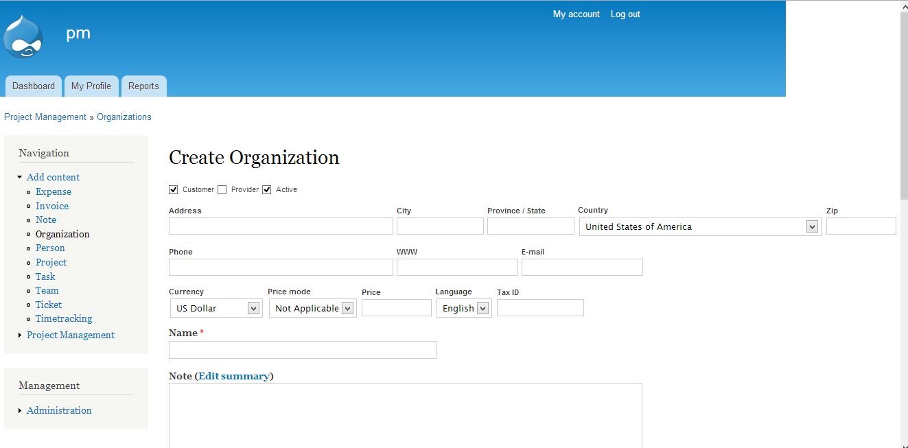 For example a organization add form looks like below in Bartick